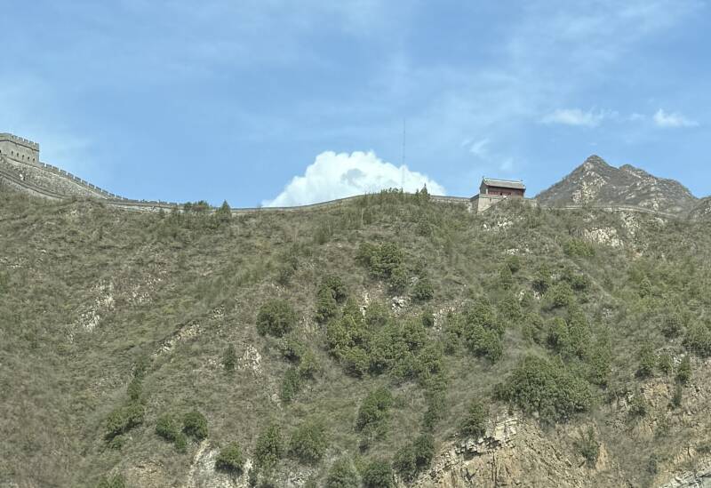 Rounding a mountain curve, we got the first view of The Wall. The mountains look so imposing it doesn’t seem like the Wall would be necessary in the area, but it was a continuous, connected fortress, troop barracks and supply line for its (once entire) length of over 13,000 miles.