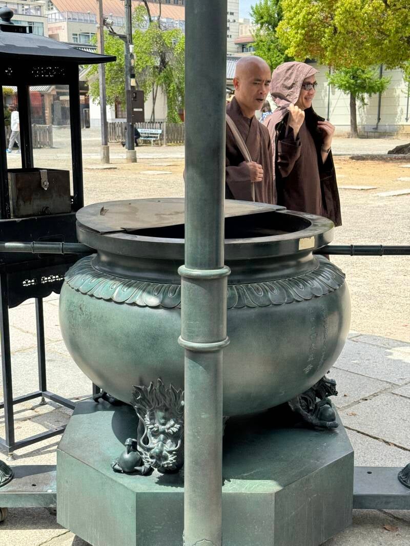 Our excursion for the day took us to the Shitennoji [Buddhist] Temple, believed to be the oldest in Japan. It was established in 593 and burned down and was reconstructed several times. The current structures were erected in 1963, of nonflammable concrete.