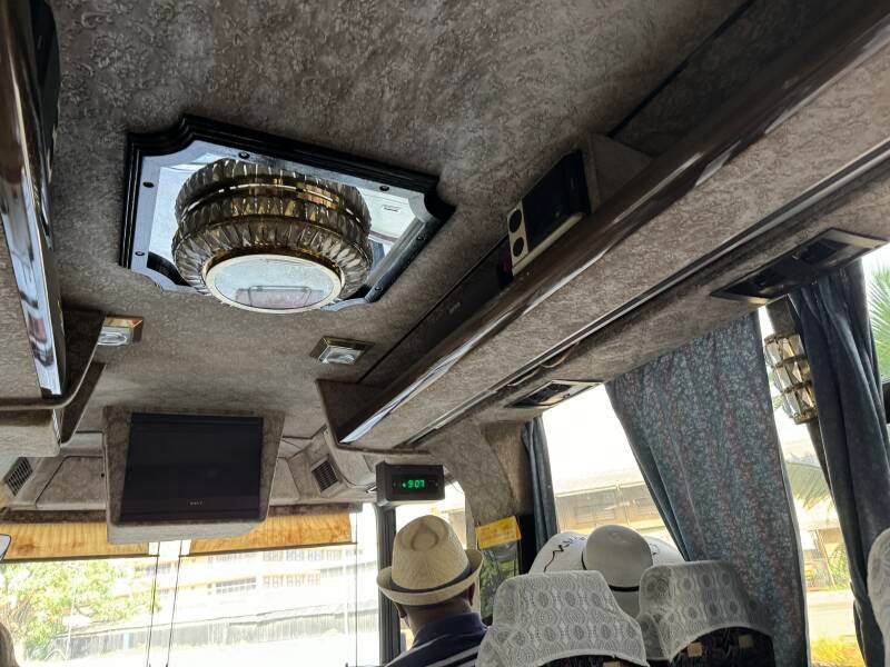 We started our excursion about 9:00am in a bus with "crystal" light fixtures and promptly found ourselves stuck in a traffic jam.