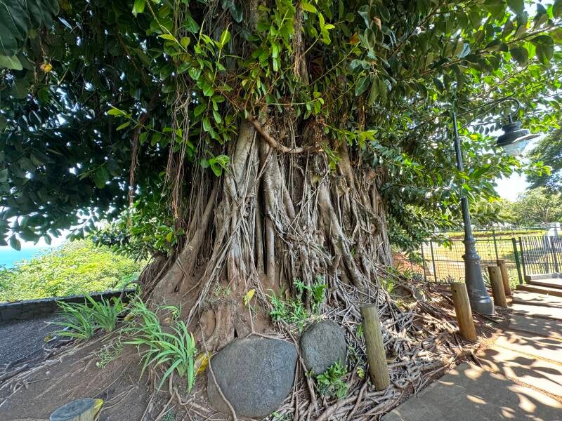 Our last stop was at the bay's scenic overlook, Belvédère du Tahara'a above Arue. There's a huge banyan tree at the top of the stairs. Many on the island are several hundred years old and brought from India, via Hawaii. When we got back to the dock there was a huge (Scientology owned) yacht tied up on the opposite side of the walkway.