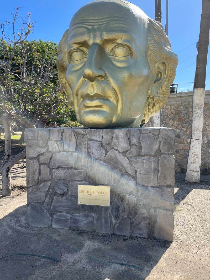 We arrived about 9:00am and went ashore 11:00am-ish. There were shuttle buses from the dock into town, with the drop off/pick up spot at the end of the Plaza Civica de la Patria, dedicated to past heroes, honored with giant heads.