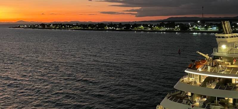 As soon as the sun went down, the temperature decreased. We pulled out of the harbor before the stated "gangway up" time, meaning everyone was accounted for and back onboard early. With the added breeze from the movement of the ship, it's a comfortable evening outside.