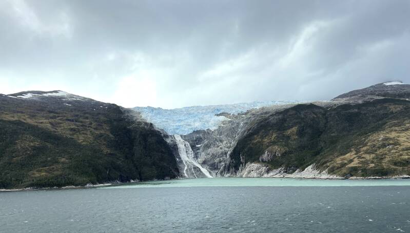 We left Ushuaia about 2:00pm, heading toward Punta Arenas. There were so many glaciers. This one had the widest waterfall.