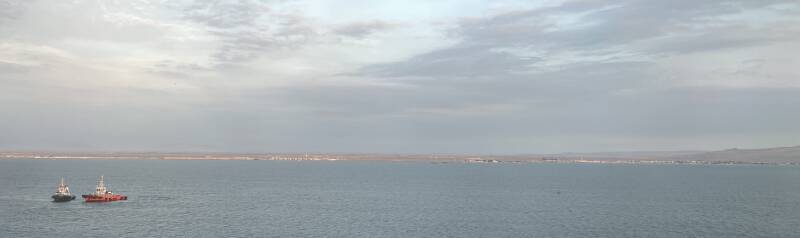 Below is a panorama picture of the port side view from the ship and the boat graveyard on the other side.